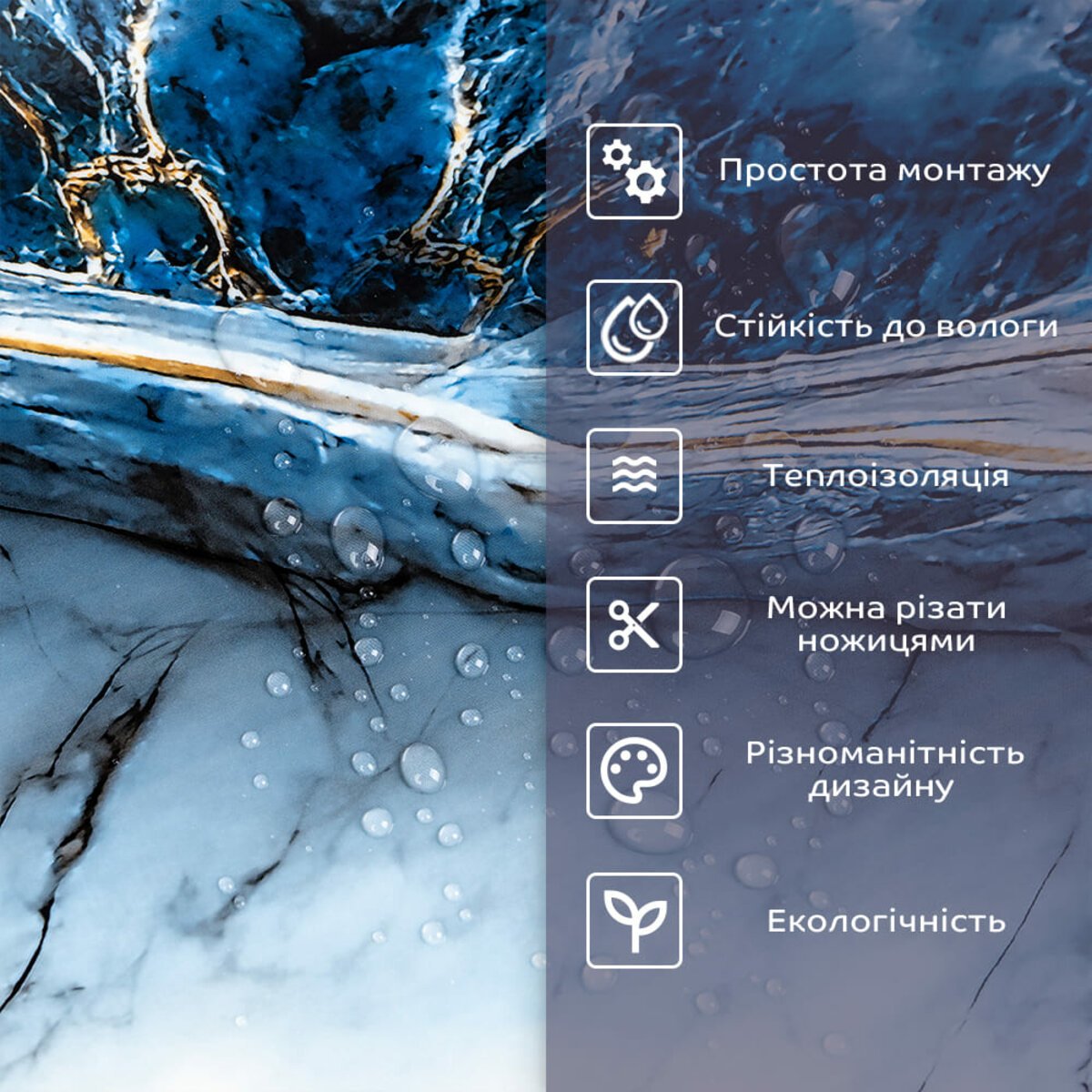 • 2. Стійкість до вологи: матеріал стійкий до впливу вологи та пари, а також до появи плісняви, що робить його придатним для використання у приміщеннях з високою вологістю, таких як ванни та кухні. Плитка підходить для створення фартуха кухні, можна клеїти біля плити на відстані не менше ніж 20-25 см;