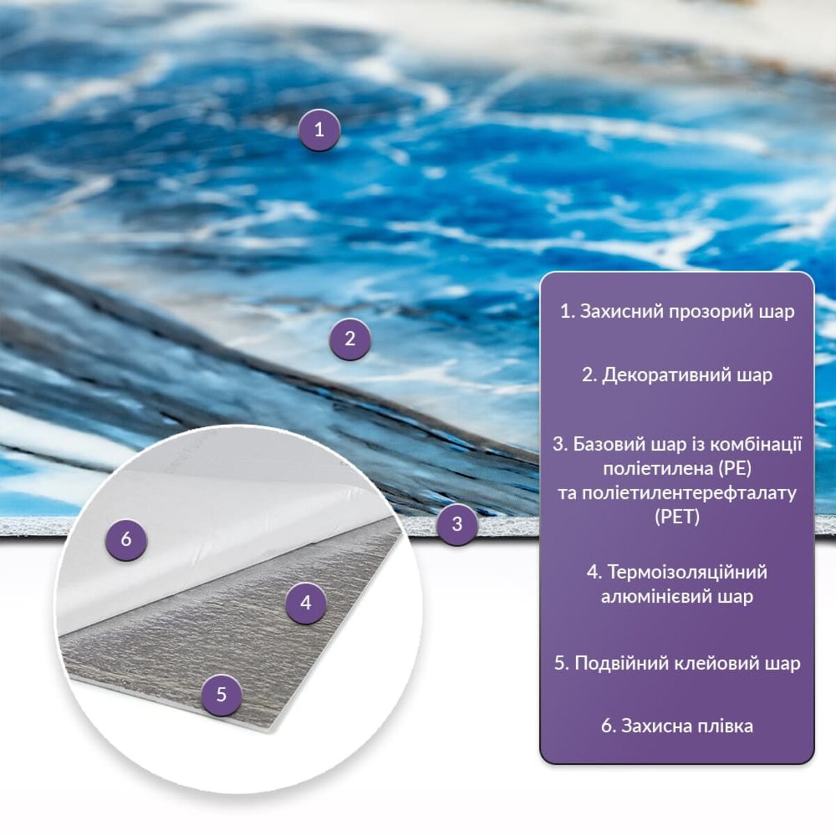 • Базовий шар з комбинації поліетилена (PE) і поліетилентерефталату (PET)