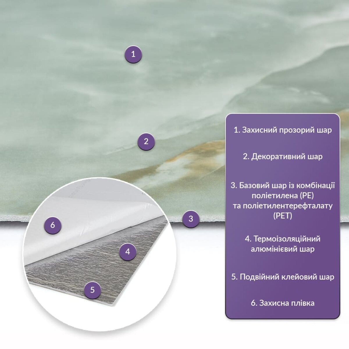 - 3. Ізоляція: плитка має звукову та теплоізоляцію завдяки наявності повітряних прошарків та додатковому алюмінієвому шару;