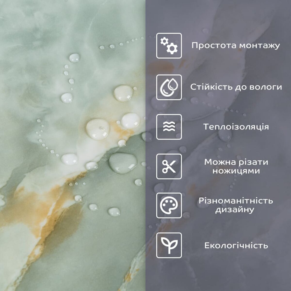 - 2. Стійкість до вологи: матеріал стійкий до впливу вологи та пари, а також до появи плісняви, що робить його придатним для використання у приміщеннях з високою вологістю, таких як ванни та кухні. Плитка підходить для створення фартуха кухні, можна клеїти біля плити на відстані не менше ніж 20-25 см;
