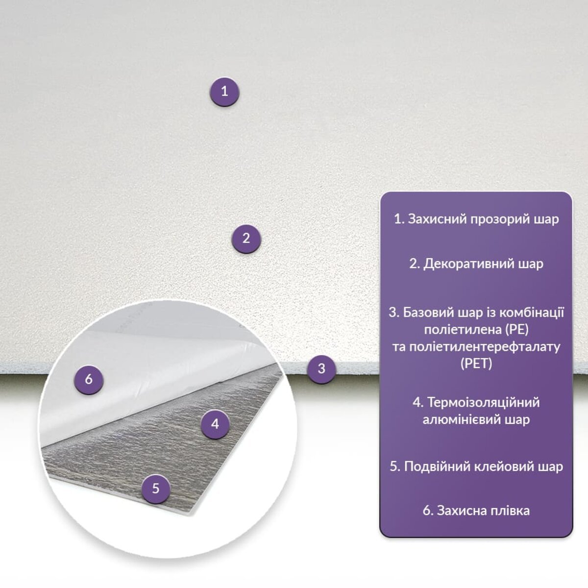 - 3. Ізоляція: плитка має звукову та теплоізоляцію завдяки наявності повітряних прошарків та додатковому алюмінієвому шару;