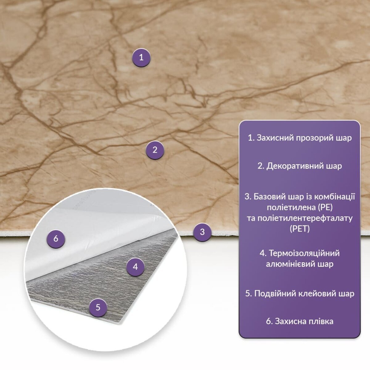 - 3. Ізоляція: плитка має звукову та теплоізоляцію завдяки наявності повітряних прошарків та додатковому алюмінієвому шару;