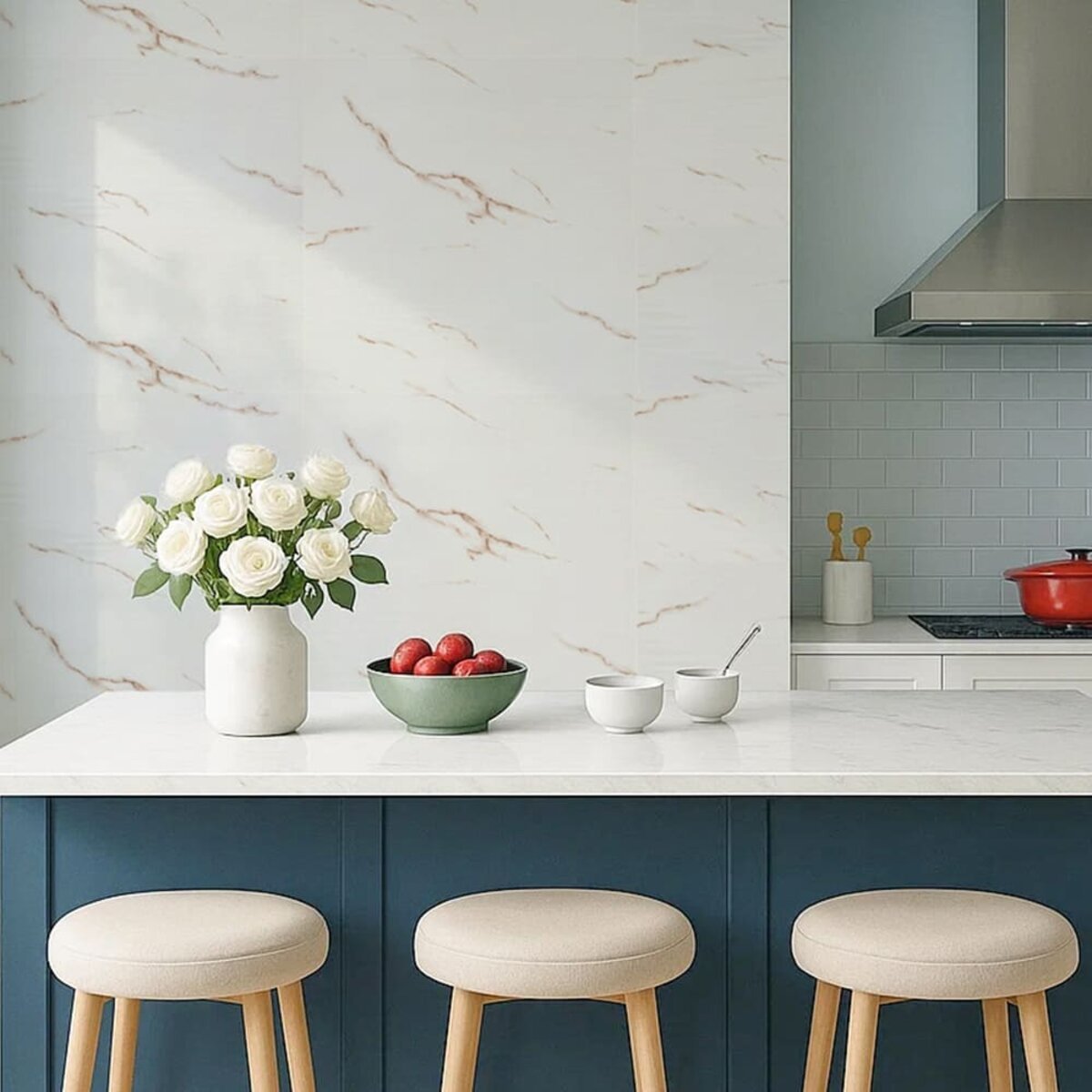 - 2. Стійкість до вологи: матеріал стійкий до впливу вологи та пари, а також до появи плісняви, що робить його придатним для використання у приміщеннях з високою вологістю, таких як ванни та кухні. Плитка підходить для створення фартуха кухні, можна клеїти біля плити на відстані не менше ніж 20-25 см;