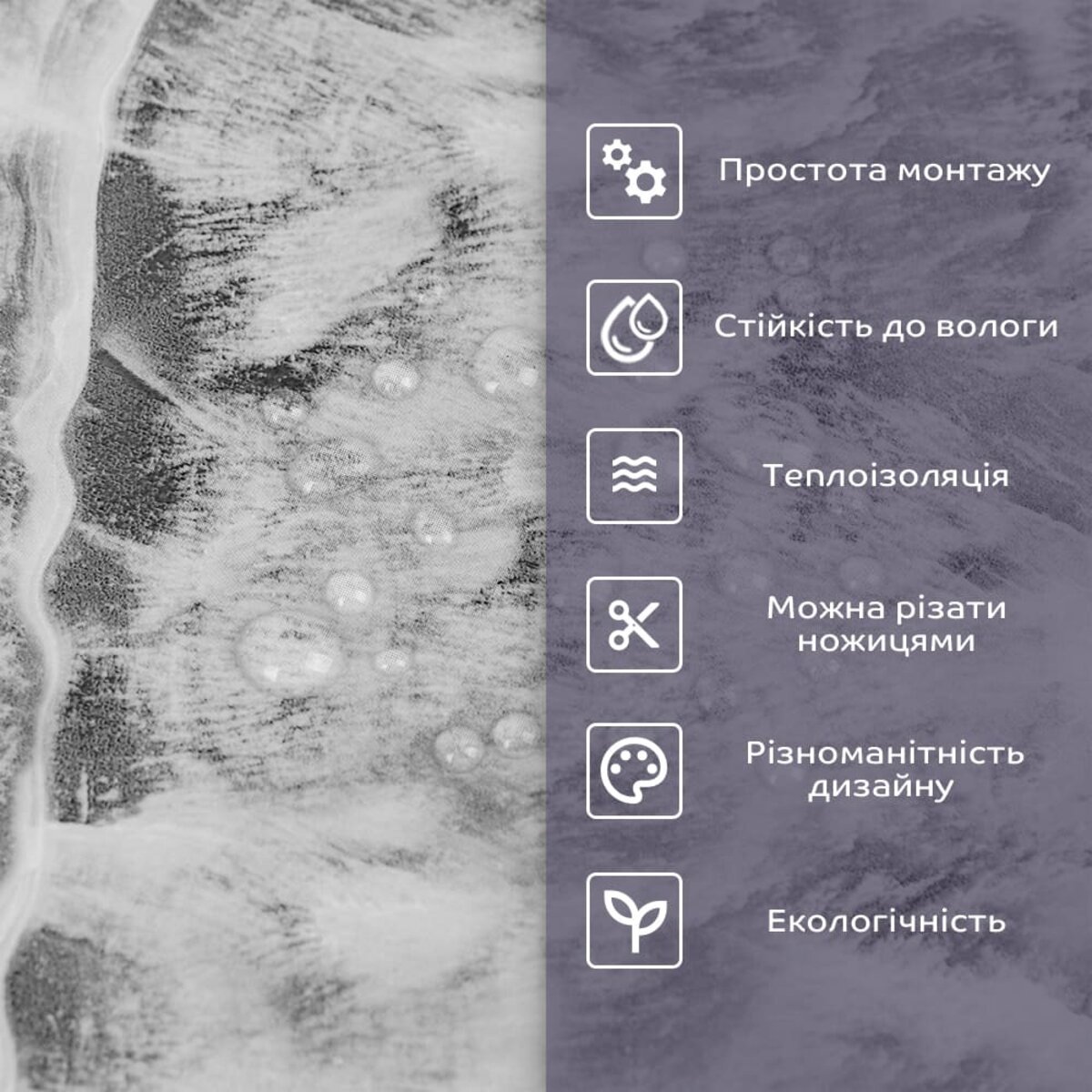 - 2. Стійкість до вологи: матеріал стійкий до впливу вологи та пари, а також до появи плісняви, що робить його придатним для використання у приміщеннях з високою вологістю, таких як ванни та кухні. Плитка підходить для створення фартуха кухні, можна клеїти біля плити на відстані не менше ніж 20-25 см;