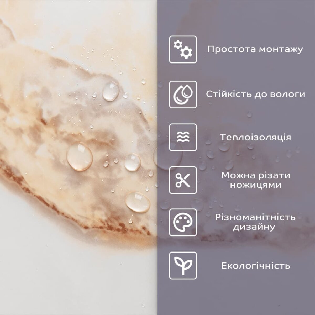 - 2. Стійкість до вологи: матеріал стійкий до впливу вологи та пари, а також до появи плісняви, що робить його придатним для використання у приміщеннях з високою вологістю, таких як ванни та кухні. Плитка підходить для створення фартуха кухні, можна клеїти біля плити на відстані не менше ніж 20-25 см;