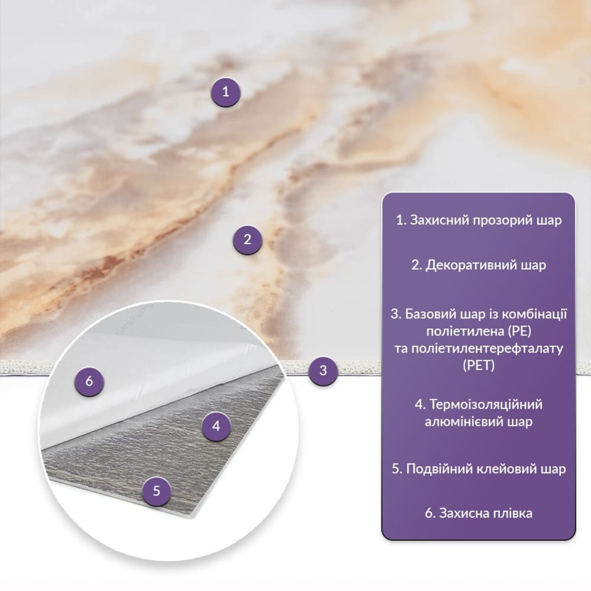 - 3. Ізоляція: плитка має звукову та теплоізоляцію завдяки наявності повітряних прошарків та додатковому алюмінієвому шару;