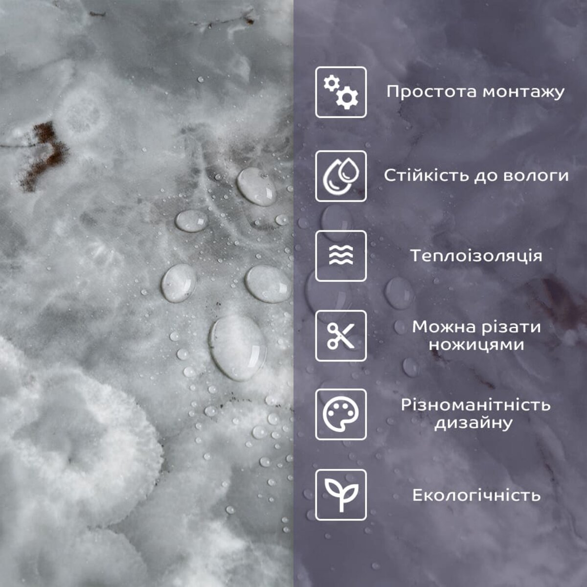 - 2. Стійкість до вологи: матеріал стійкий до впливу вологи та пари, а також до появи плісняви, що робить його придатним для використання у приміщеннях з високою вологістю, таких як ванни та кухні. Плитка підходить для створення фартуха кухні, можна клеїти біля плити на відстані не менше ніж 20-25 см;