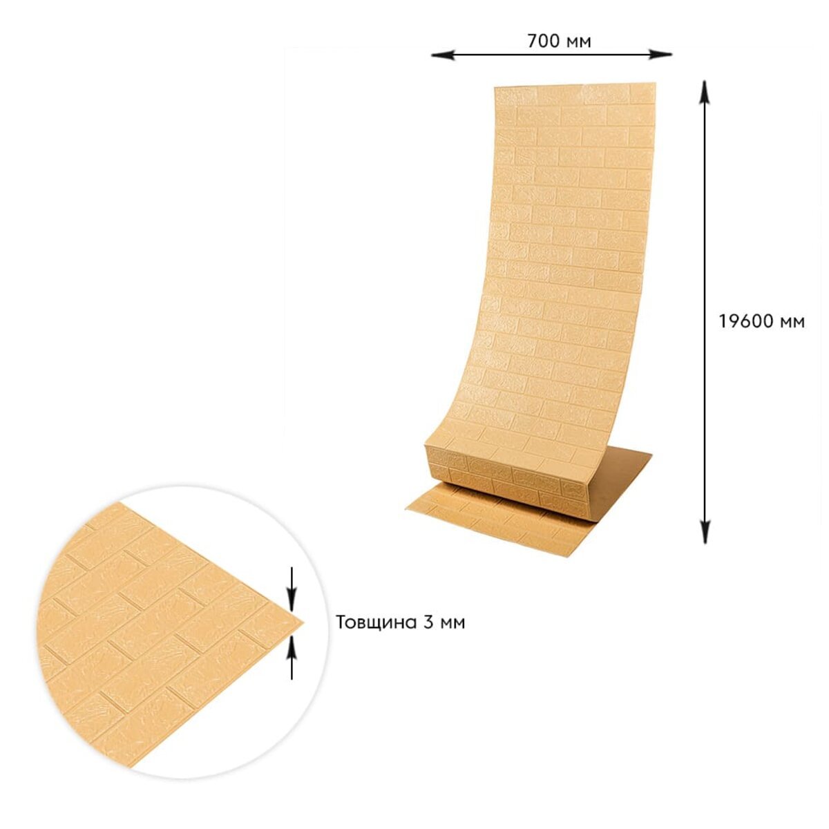 Самоклеюча 3D панель під бежеву цеглу в рулоні 19600x700x3мм