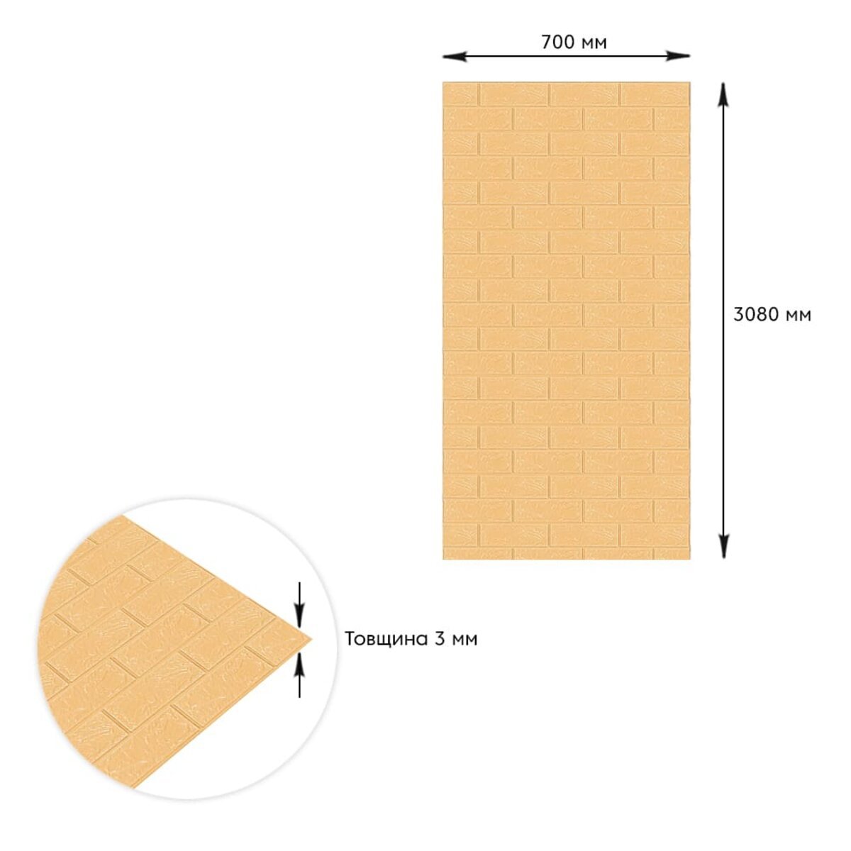 Самоклеюча 3D панель під бежеву цеглу в рулоні 3080x700x3мм (R009-3)