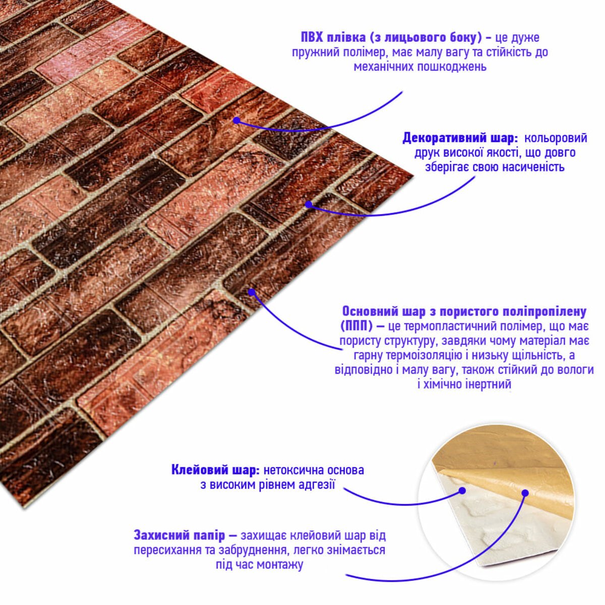 Самоклеюча 3D панель під коричневу катеринославську цеглу 3080x700x3мм SW-00001768
