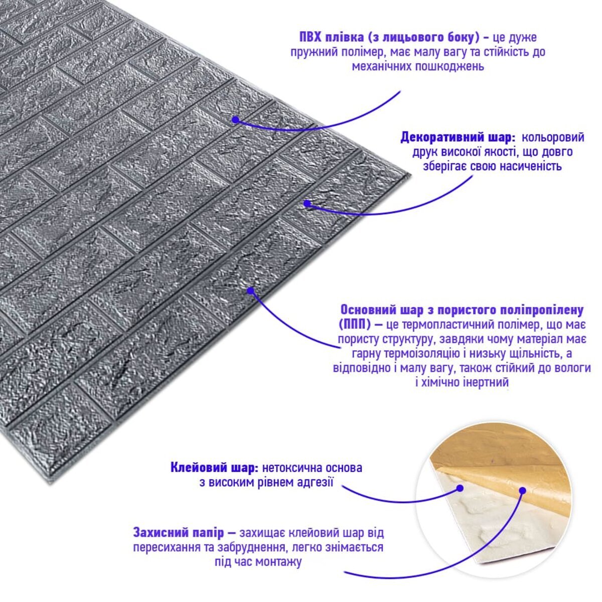 Самоклеюча 3D панель під срібну цеглу в рулоні 3080x700x3мм (R017-3) SW-00001445