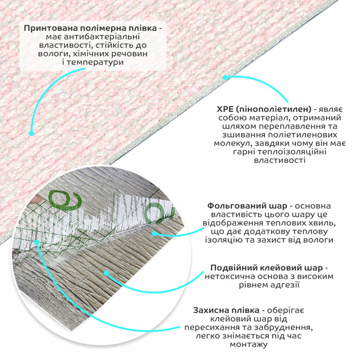 3. Теплоізоляція: Спінений ХРЕ і фольгований шар забезпечують хорошу теплоізоляцію, що допомагає підтримувати комфортну температуру в приміщенні.