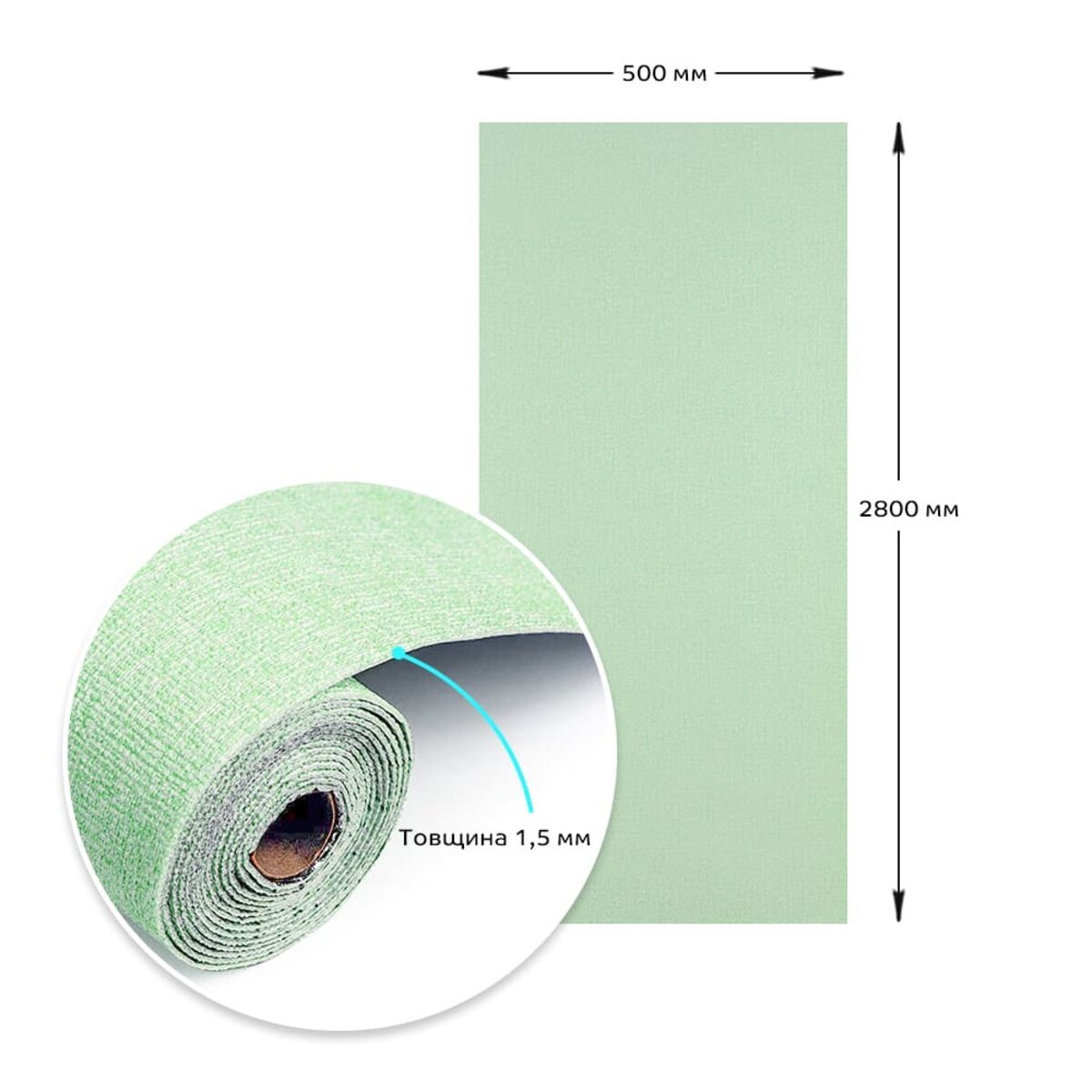 Площа: 2800 х 500 х 1,5 мм – 1,4 м2