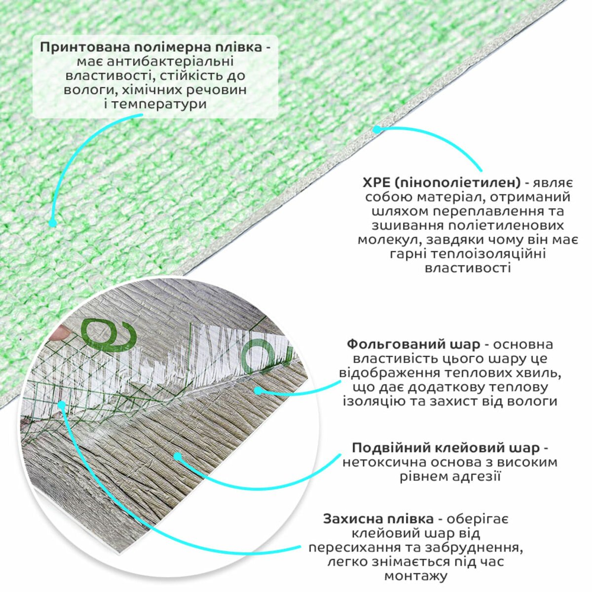 3. Теплоізоляція: Спінений ХРЕ і фольгований шар забезпечують хорошу теплоізоляцію, що допомагає підтримувати комфортну температуру в приміщенні.