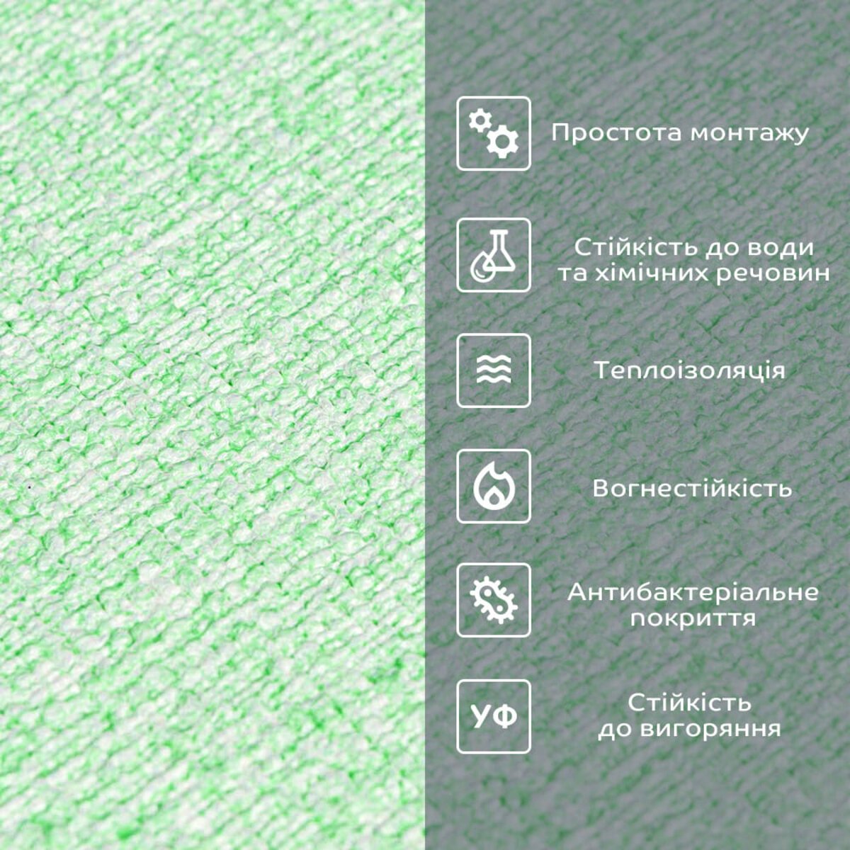 1. Прінтована полімерна плівка – має антибактеріальні властивості, стійкість до вологи, хімічних речовин і температури. -захист допомагає запобігти вигоранню, зберігаючи колір насиченим, за рахунок чого шпалери довго зберігають свій первісний естетичний вигляд