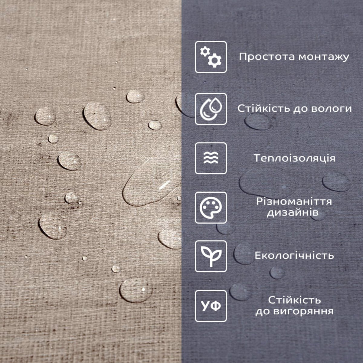 2. Стійкість до вологи: вінілова плитка стійка до вологи, що робить її відмінним вибором для ванних кімнат, кухонь та інших приміщень з підвищеною вологістю, матеріал стійкий також до впливу пари, а також до появи плісняви. Плитка підходить для створення фартуха кухні, можна клеїти біля плити на відстані не менше ніж 30-50 см;