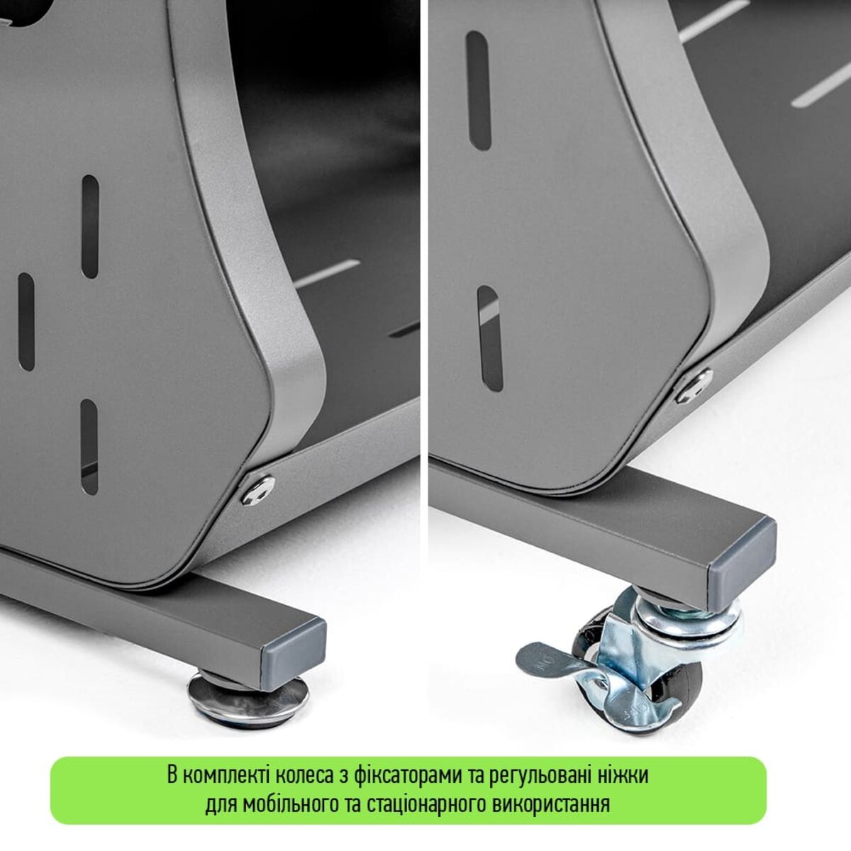 - Мобільність і стаціонарність: у комплекті передбачені колеса із фіксаторами та регульовані ніжки.