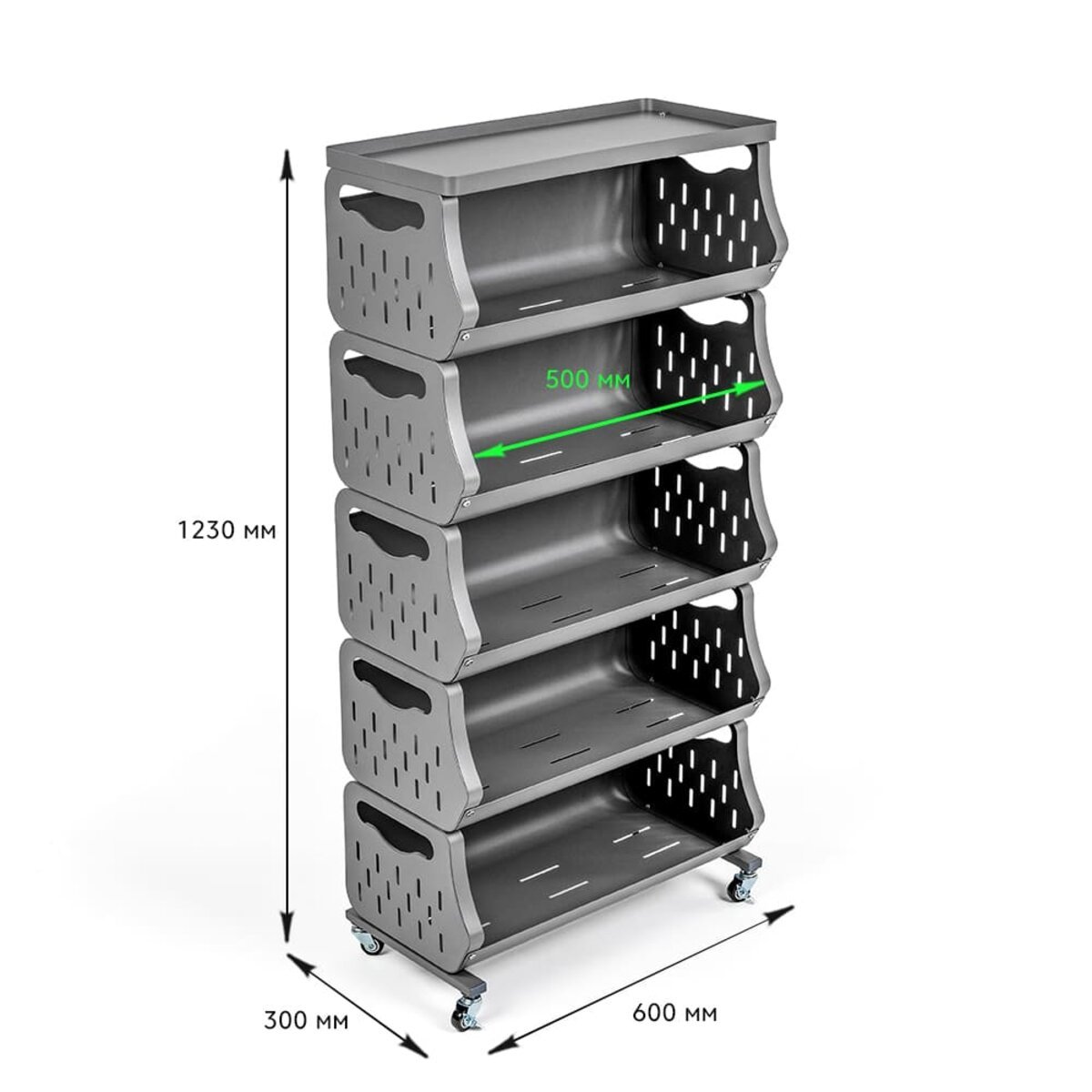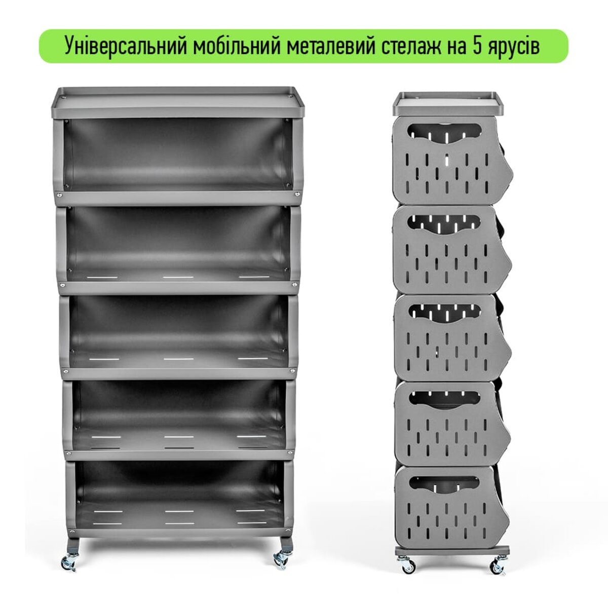До вашої уваги стильне та функціональне рішення для організації простору у будь-якому приміщенні – універсальний стелаж для зберігання. Завдяки мобільній конструкції з колесами (які йдуть у комплекті), його легко переміщати туди, де він потрібен найбільше. Компактний дизайн із зручними полицями забезпечує ефективне зберігання речей з легким доступом до них. Перфоровані стінки полиць сприяють природній вентиляції, що ідеально підходить для зберігання продуктів або текстилю. Стелаж гармонійно доповнює домашній, офісний чи гаражний простір, створюючи порядок і комфорт.