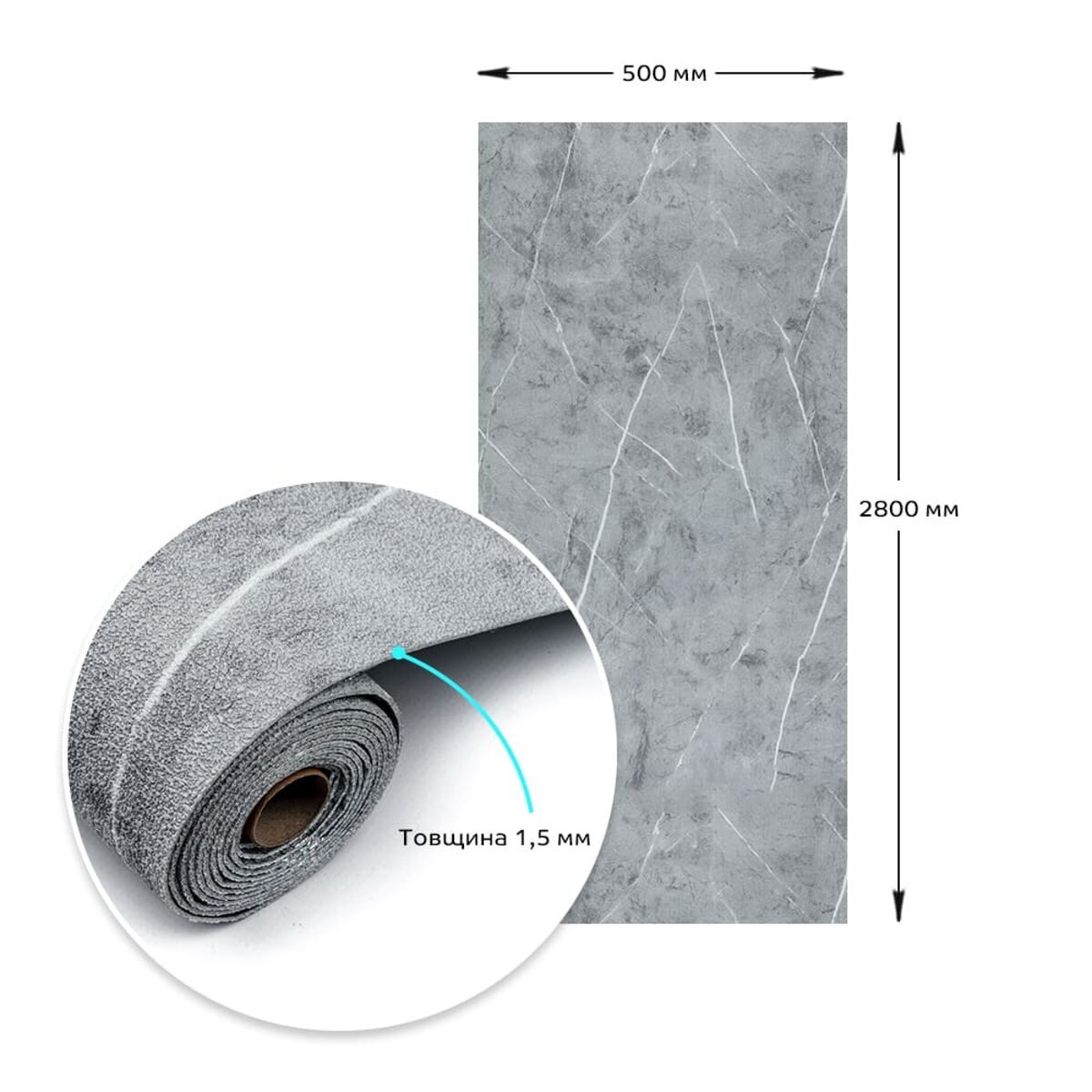 Площа: 2800 х 500 х 1,5 мм – 1,4 м2