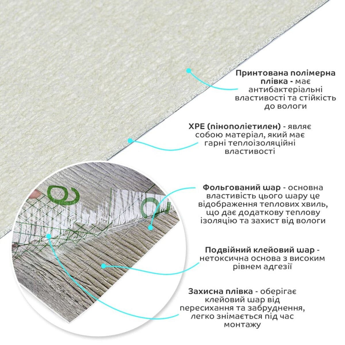 3. Теплоізоляція: Спінений ХРЕ і фольгований шар забезпечують хорошу теплоізоляцію, що допомагає підтримувати комфортну температуру в приміщенні.