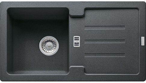 Кухонная мойка Franke Strata STG 614-78 прямоугольной формы размером 780х435 мм. Есть одна чаша 333x360x166 мм и крыло для посуды. Материал поверхности – фрагранит.