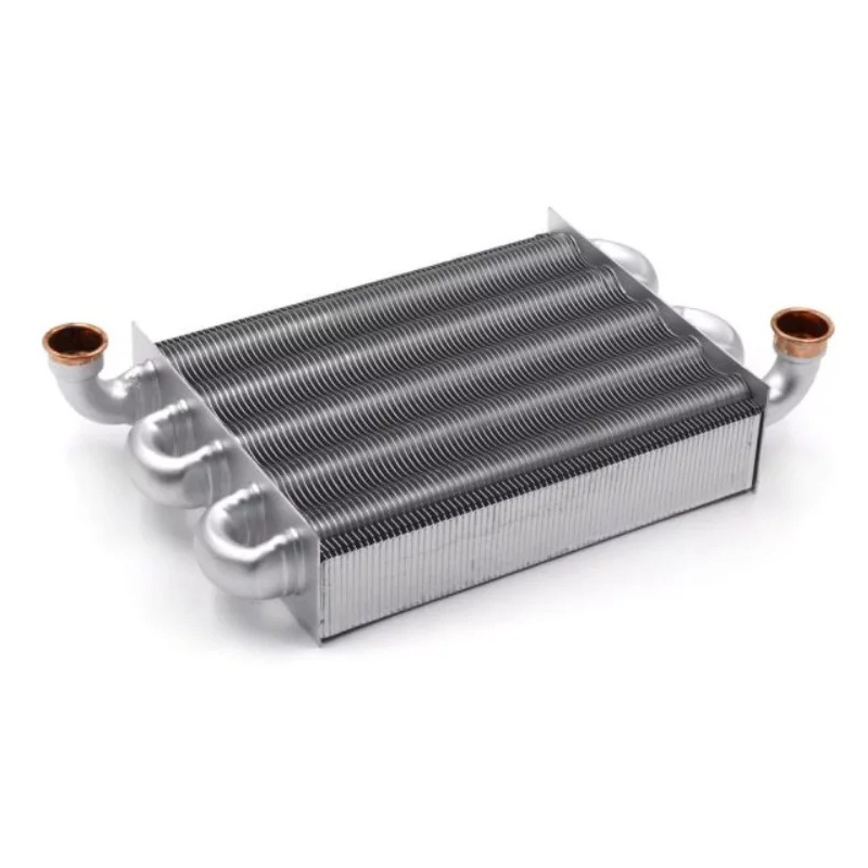 Первинний теплообмінник для настінних газових котлів, виконаний із мідних труб та напаяних мідних пластин. Має високу жаростійкість і антикорозійні властивості. Дозволяє використовувати як теплоносій як антифризи, так і звичайну воду.