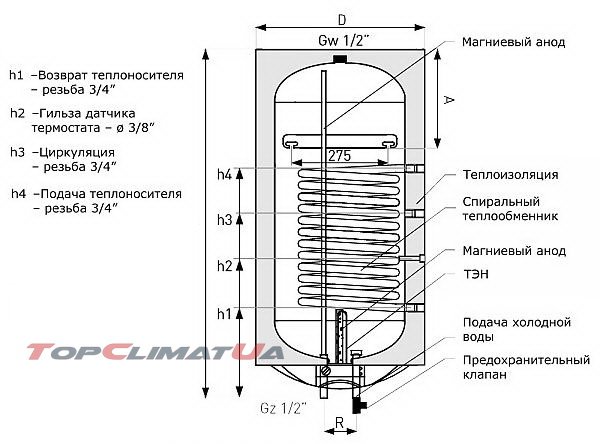 - Большая площадь спирали косвенного нагревателя (теплообменника)
