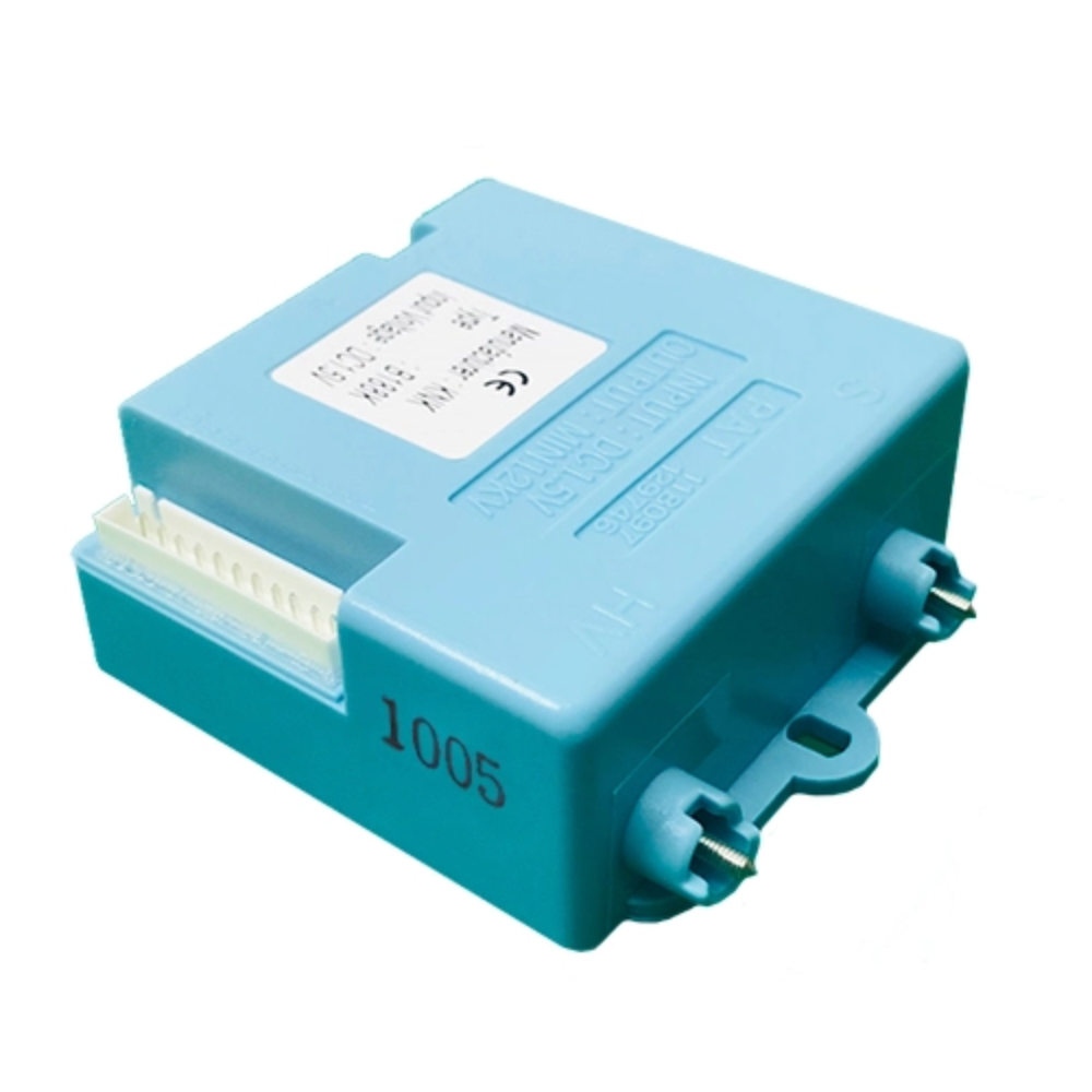 Блок управління відповідає за керування генерацією іскор, подачею живлення на електромагнітні котушки, контроль наявності полум’я та включенням пальника при витраті води понад 2,5 л/м. Живиться від однієї батареї LR20 (1,5 В). Мінімальна робоча напруга: 1,2 В.